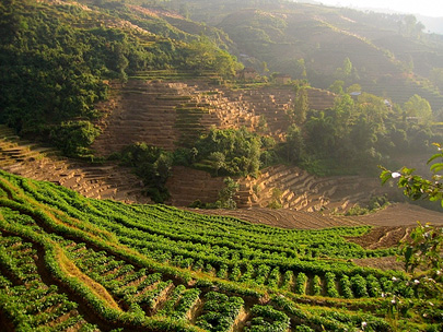 קרני השמש הראשונות מאירות את הטרסות בנגרקוט