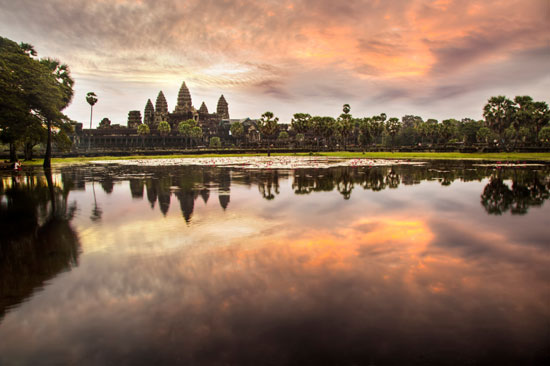 בתמונה: אנקגור ואט בקמבודיה בשעת הזריחה. יצירת אמנות חד-פעמית של הטבע