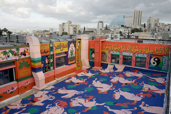 "ההר לא צריך עוד הר. האדם צריך עוד אדם", זו אחת האמירות מעוררות המחשבה שמלוות יצירת ענק צבעונית של קבוצת אמני הקולקטיב החיפאית "ברוקן פינגאס", בעלת שם עולמי באמנות גרפיטי, המשתרעת על פני קומת הגג המשופצת של בית הגפן.