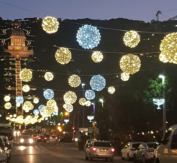 כדורי אור תלויים בין שמים וארץ ברחוב הראשי של המושבה הגרמנית ויוצרים משחקי אור בשלל צבעים לאורך רחוב מבני האבן המשומרים ובמעלה המדרגות המוארות אל מקדש הבהאים. המסעדות ברחוב מתחרות ביניהן במגוון הקישוטים המרצדים: עצי אשוח, איילים באורות זהב ומטריות אור. כל אלה יוצרים אווירה חגיגית לקראת פסטיבל "החג של החגים", חג חיפאי ייחודי עתיר אירועים משמחים המתקיים מידי שנה בחודש דצמבר.