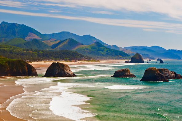 חוף קאנון, אורגון חוף קאנון (Cannon Beach) שבאורגון נמצא בנקודת המפגש של יער גשם ממוזג עם האוקיינוס השקט, וכדי להשלים את התמונה הדרמטית של היערות, החול והגלים, יש גם סלעי ענק שמעטרים את החוף ומעניקים לו מראה סוריאליסטי. גולת הכותרת היא סלע הייסטק (Haystack Rock) שמזדקר לגובה 72 מטר מתוך הים. מסביב תוכלו לראות קורמורנים ופאפינס. כשמגיעים לחוף בשעת השקיעה המראה מהפנט ממש. טיול בחוף בשעת השפל יאפשר לכם למצוא הרבה אוצרות – כוכבי ים, סרטנים, צדפות ועוד.  סלעי ענק בחוף קאנון