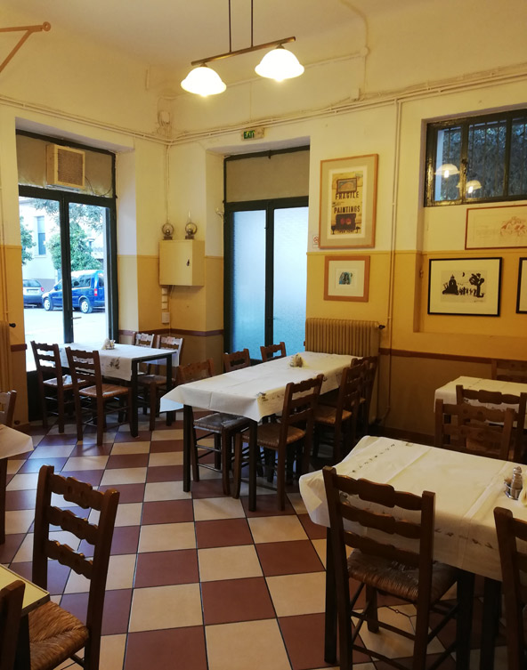 הטברנה שממוקמת בין האטליזים בלב השוק המרכזי של אתונה, מציעה אווירה נעימה ורגועה, בלי גינונים מיותרים, עם שירות לבבי ואוכל יווני קלאסי פשוט וטעים. תמצאו פה מנות כמו כדורי בשר ברוטב עגבניות, ארטישוקים נפלאים ומרקים מהטובים שתאכלו ביוון. אחת המנות המיוחדות של המקום היא פטסה – מרק בשר עם חלקי פנים. מרקים נוספים שתמצאו פה הם מרק עוף, מרק דגים, מרק עגל. דרך החלונות הגדולים של הטברנה תוכלו לספוג את אווירת השוק. שימו לב – המסעדה פתוחה בערב רק בסופי שבוע (שישי-שבת), בשאר ימות השבוע היא נסגרת בשמונה בערב.
