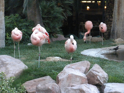 חיות הן עניין פופולרי למדי בלאס וגאס, ומלונות רבים מתגאים בתצוגת חיות ייחודית משלהם. במלון פלמינגו (Flamingo) הוותיק, שהוא אחד מהמלונות הראשונים שנפתחו בסטריפ, יש גן גדול ויפה עם בריכות ומפלים, בו חיים בנחת ברווזים, ברבורים, צבים, דגי נוי וכמובן להקה גדולה של פלמינגו. הגן פתוח בכל יום מ-8:00 בבוקר ועד השקיעה והכניסה חופשית גם לאורחים מבחוץ.