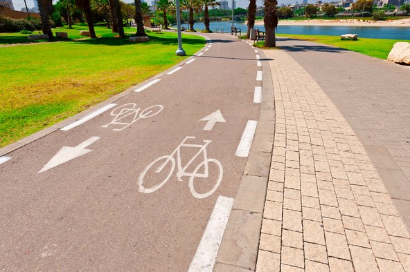 שביל אופניים בתל אביב. סלילת שבילי אופניים היא אחת הדרכים שעיריות נוקטות כדי להפחית את עומס התנועה והזיהום