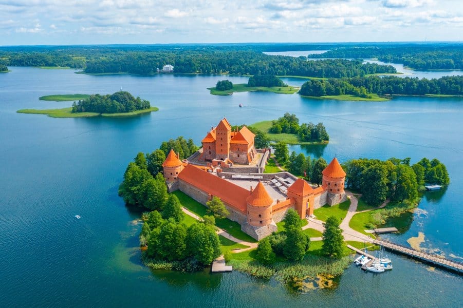 2. טרקאי – העיר הסמוכה לווילנה מפורסמת הודות לטירה הימי ביניימית שלה, אבל היא גם גן עדן לאוהבי הטבע, הודות למיקומה על חצי אי המוקף באגם תכול.