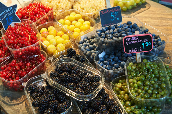 דוכן של פירות יער בשוק המקורה, שבו תמצאו ממיטב התוצרת המקומית