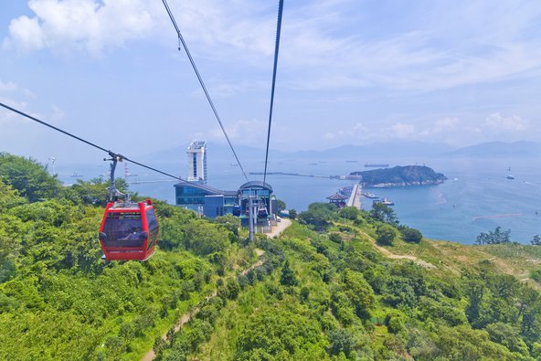רכבל בעיר החוף יאוסו הטובלת בנופים ירוקים