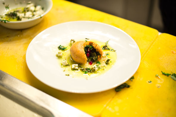 "זו הפעם הראשונה שאני משתף פעולה עם שף ערבי", מתרגש מאסימיליאנו די מטאו, זוכה מאסטר שף בעונה האחרונה. המאסטר שף הטרי התארח בדיינר החיפאי (שדרות המגינים 4), שבבעלות הזוג הצעיר ניבין וסלים. "ישראל היא כור היתוך לכל מטבחי העולם והמקום המושלם לערוך היכרות עם עולם התבלינים העשיר", אומר מאסימיליאנו. הוא בחר לבשל גרסה איטלקית מקורית משלו לרישטה – תבשיל חלאבי מסורתי של אטריות דקות מקמח ומים עם עדשים, המתובל בשפע של כמון. בגרסה האיטלקית המוכרת לו מהבית שידך עדשים עם שעועית לבנה ושילב באטריות פסטה רחבות מקמח דורום וניקד את המנה ברימונים ובעשבי תיבול רעננים. לדי מטאו היתה זו הזדמנות פז לחוות את ההוויה המקומית דרך האוכל. כבן למשפחה איטלקית, הוא מספר שהתחבר בטבעיות למטבח הערבי בשל קרבתה של איטליה לתרבויות אגן הים התיכון. בתום היום הראשון של הפסטיבל הוא הוזעק להתקין מלאי נוסף מהמנה שקנתה לה מעריצים, אשר ביקשו להוסיף עוד ועוד מהתיבול החריף, וכך למד מהשטח על ההעדפות הטעם המקומי.