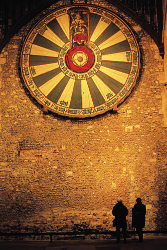 | השולחן העגול "האמיתי", מצודת ווינצ'סטר. בדיקות הראו ששכבת הצבע הקדומה ביותר היא מהמאה ה-16, תקופתו של הנרי השמיני, שגם הוא – כמו שליטים רבים לפניו ואחריו – רצה להציג את עצמו כיורש למלך ארתור | צילום: אמנון אבישי |