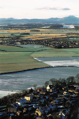 | נוף ממרומי וואלאס מונומנט, ליד פולקירק, סקוטלנד. המקום הטוב ביותר להשקיף אל שדה הקרב האחרון של ארתור הסקוטי הוא האתר לזכר לוחם החופש הסקוטי וואלאס (המוכר מן הסרט "לב אמיץ"). האומנם צירוף מקרים, או שמא גויס ארתור גם למלחמת העצמאות הסקוטית? | צילום: אמנון אבישי |