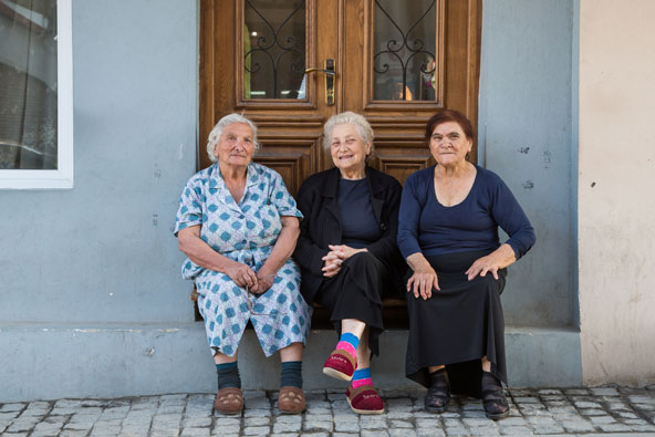 נשים בפתח בית בתלאווי. הגאורגים נוהגים לקבל את פני המבקרים בחיוך ובחום
