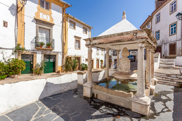 בתמונה הפותחת: המעיין במרכז הרובע היהודי בקשטלו דה וידה. המבנה, ובמרכזו פסל של צבעוני, הוא מתנת משפחת שפינוזה שגרו בעיירה והיגרו להולנד | צילום: שאטרסטוק