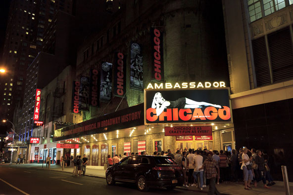 מיוזיקל בברודווי בניו יורק האמפייר סטייט בילדינג או רוקפלר סנטר? שופינג בשדרה החמישית או טיול לילי על גשר ברוקלין? לא משנה כמה תנסו, אי אפשר להספיק את כל מה שיש לניו יורק להציע בזמן קצוב, אבל אפשר לנסות לראות כל פעם קצת. אז אם כבר ביקרתם בכל המקומות השווים ואכלתם במסעדות הכי טובות, זה הזמן לפרגן לעצמכם מחזמר טוב בברודווי. ההמלצה שלנו: שיקגו (Chicago) עתיר התשבוחות והפרסים, המגולל עלילה רומנטית סבוכה ומפותלת על שתי נשים המואשמות ברצח, ומציע חוויה מוזיקלית ניו יורקית במיטבה.  תור בכניסה למחזמר שיקגו בתיאטרון אמבסדור בברודווי