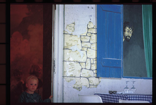 אבל לצילומים במקומות אחרים בעולם יש גם תפקיד משחרר: "המבט שלנו על המציאות בחו"ל הוא קרקסי, בגלל שהוא מבחוץ. תראי את החייל היווני בשקופית, שקופץ כמו ליצן. רק במבט שני מבחינים באנדרטת הזיכרון שמאחוריו".