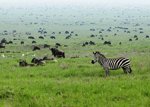 נדידת עדרי הגנו והזברות מן המישורים המצהיבים של שמורת הסרנגטי בטנזניה לכיוון צפון-מערב, אל המישורים המוריקים שלחופי אגם ויקטוריה, היא הנדידה השנתית המרשימה ביותר בעולם החי, והיא מתחרה בנקל בנדידת העופות מיבשת ליבשת ובנדידת דגי הסלמון מן האוקיינוס לנחלי אמריקה. יותר ממיליון גנו (CONNOCHAETES TAURINUS) וכשלושת רבעי המיליון זברות מצויות (EQUUS BURCHELLI) יוצאים מדי שנה למסע המדהים הזה, ובעקבותיהם הטורפים המחסלים את החלשים והמפגרים, שאינם עומדים בתלאות המסע הארוך. מי שחזה בטורים הענקיים הנעים במישורי הסרנגטי (SERENGETI), או מי שחזה בעדרים הענקיים המגיעים לגבעות הירוקות של אפריקה (כך קרא המינגווי בספרו הנושא שם זה למישורי מסאי-מרה, MASAI MARA, שבדרום-מערב קניה, על גבול טנזניה), יודע עד כמה אדירה העוצמה החיה הנעה בשטחים הנרחבים הללו. מן הצהוב והיבש אל הירוק והעסיסי, שהוא מקור החיים בסוואנה האפריקאית. התמזל מזלי וזכיתי לחזות בנדידה הזו כמה פעמים. כשניצבתי מול עדר כזה החוצה את נהר המרה כמסת לבה אדירה הנשפכת לנהר וממנו, כשראיתי את עשרות הגנויים שטבעו בנהר ואת מאות הנשרים והעזניות העטים עליהם, כשנתקלתי בכל צעד ושעל באריות החוגגים על גנו או על זברה, או בצבועים מנומרים ובתנים המכלים את שיירי סעודת האריות – רק אז הבנתי עד כמה עצומה התופעה וכמה אדיר כאן כוחו של הטבע. בסוף חודש מאי מתחילים המישורים של שמורת סרנגטי, השוכנת בצפון טנזניה, להצהיב. עונת הגשמים חלפה, והמישורים הענקיים, המכוסים עשב ירוק, זרועים בעדרי פרסתנים מכל המינים. הנדידה הגדולה עומדת להתחיל. סרנגטי היא השמורה העשירה ביונקים יותר מכל שמורת טבע אחרת בעולם, ולכן, כנראה, גם הנחקרת ביותר באפריקה. שנים רבות מתבצעת כאן מדי שנה ספירת יונקים ונערכים מחקרים שחשיבותם המדעית עצומה. כתבה זו באה לענות בעיקר על שאלות הקשורות באירגון החברתי של כמה מן הפרסתנים האפריקאיים. האם נכון לקרוא להמוני הגנו והזברות בשם עדרים? האם יש אירגון חברתי בקבוצות המסע הללו, ואם כן – מהו? האם עדרי המסע שונים מן העדרים שאינם נודדים?