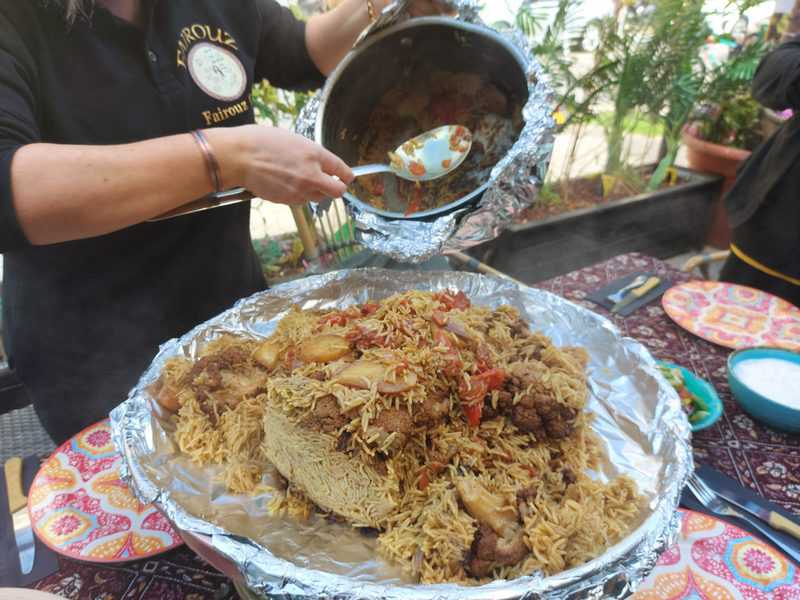 אחרי שמצליחים להתנתק מהנוף, אפשר להתרכז בשולחן, שעליו מונחים סלטים ומינים רבים ומגוונים של ממולאים – גלילות תפוחי אדמה ממולאות בפטריות, מאפי בצק ממולאים בגבינות, בגבינות ותרד, בעוף ופטריות ועוד שילובים שונים ומעניינים. לצד האוכל הנהדר של עליא אפשר ליהנות מסיפורים משפחתיים נהדרים לא פחות שמחמוד מספר. עלילות הסיפורים פתלתלות ומפתיעות והן חושפות טפח מחייה של משפחה יפואית ותיקה, שבין ענפיה אפשר למצוא כלה קיבוצניקית ובני דודים פלסטינאים ויהודים, שכולם מתאחדים ליד השולחן של עליא. כשטועמים את האוכל שלה, שמוגש בנדיבות אינסופית, מבינים את סוד המשיכה. בתיאום מראש אפשר להתארח לארוחה בליווי סיפורים משפחתיים או להצטרף לסדנה של בישול ערבי יפואי (לקבוצה של עד 10 משתתפים).
