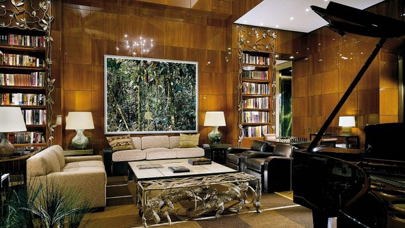 Ty Warner Penthouse במלון Four Seasons. עיצוב יוקרתי, ספרייה ופסנתר כנף