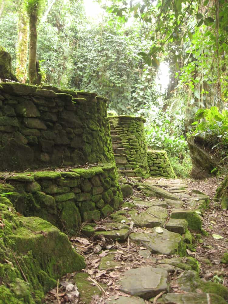 השביל התפתל בעליה, בדרך שהכפריים מגדלים לצידה קפה וקקאו בתוך טבע מהמם סביב. פעם גידלו פה גם צמחי קוקה לרוב, אשר שימשו ברובם לייצור קוקאין. בחסות הג'ונגל פעלו כאן המעבדות לייצור סמים של קרטל מדיין ומכאן שונעו לנמל סנטה מרתה ובדרך הים למדינת היעד ארצות הברית.