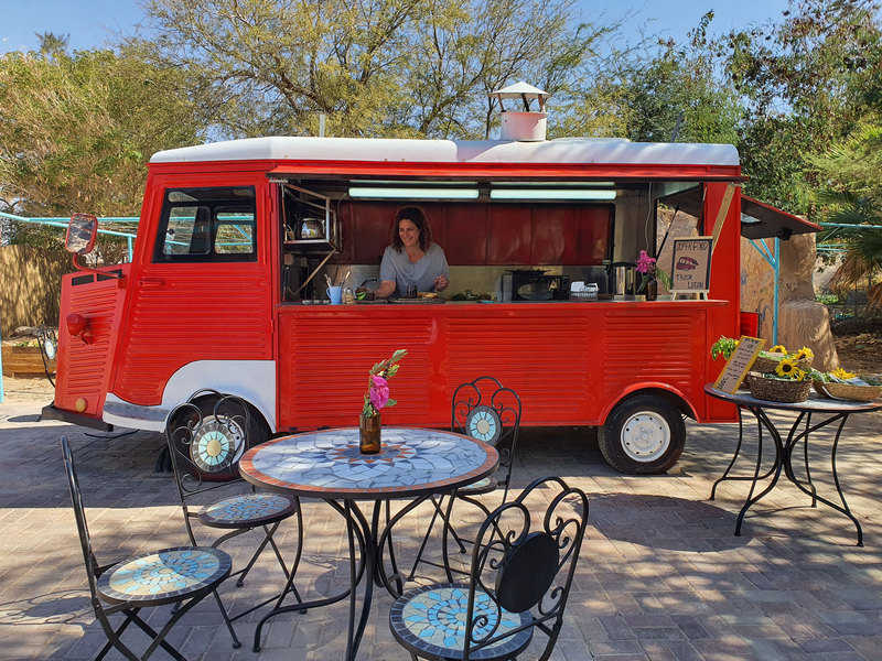 הפודטראק של שף במדבר צץ במקומות שונים בערבה, בימים קבועים, אפשר לבדוק בטלפון איפה בדיוק יהיה או לתאם ארוחה בחצר של משפחת ביטון באליפז. פרטים נוספים בטלפון 053-7710006 (רוברט) או 054-6150751 (שלי).