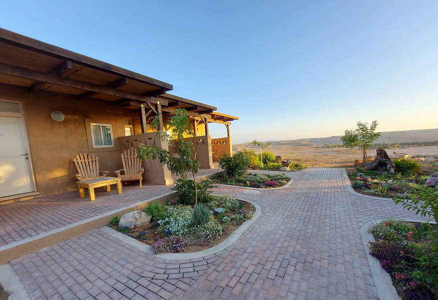 במשך כמה שנים דני וקרן ניקו את השטח, נטעו מטעי תמרים וזיתים אורגניים ולצידם הקימו בית בד, ואת ביתם בנו בראש הגבעה. אז הם התפנו לפרויקט הבא: הקמת מלון בוטיק, שנקרא ערידלה ושאינו דומה לשום מקום שאתם מכירים. נתחיל בזה שהם לא מפרסמים את המלון בשום ערוץ, שמו עובר מפה לאוזן, כשביקרנו בחווה דני סיפר לנו שכל החדרים מוזמנים חודשים רבים מראש. יש פה שבע סוויטות יפהפיות, מעוצבות בצבעי מדבר, עם ריהוט וינטג', קמין עצים, מטבחון מאובזר, מקלחת ייחודית ומרפסת עם פינת ישיבה מול הנוף ושכשוכית לטבילה בימים החמים. הכל נבנה ביד ובאהבה גדולה. מבנה עץ גדול משמש כמתחם אירוח מרכזי, בבקרים מוגשת כאן ארוחת בוקר, בערבים יש הופעות מוזיקה, הרצאות וסדנאות.