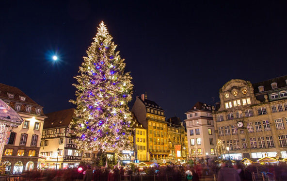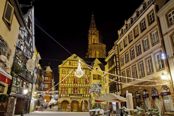 שטרסבורג בחורף, מוארת בתאורה מקסימה | צילום: Philippe DE REXEL , Strasbourg Tourist Office  עץ אשוח בשטרסבורג, המכונה "בירת חג המולד של צרפת" פריז, צרפת קלישאות אינספור נכתבו על פריז בחורף, וכולן נכונות. העיר הזו, הרומנטית בכל עונה (מלבד, אולי חודש אוגוסט), מצדיקה יותר מכל את תדמיתה הרומנטית בעונת החורף. גם בלי שלג, שיורד פה רק ימים ספורים מדי חורף, יש בפריז החורפית את כל מה שצריך כדי שתעמדו משתאים אל מול כל היופי הזה, בעיקר בתקופה שלפני חג המולד. החל מחודש נובמבר, שדרות פריז, ובעיקר שדרת השאנז אליזה, מוארות בתאורה מיוחדת, והעצים גם הם מקושטים ומוארים בשלל פנסים זעירים. גם כיכר ונדום, שדרות מונטיין היוקרתיות וקתדרלת נוטרדאם מוארים באורות החג. חלונות הראווה גם הם עוטים חג, בעיקר בבתי הכלבו הגדולים כמו גאלרי לאפייט ופרינטמפס. כשמוסיפים לאלה את שווקי חג המולד, את זירות ההחלקה על הקרח (אלו פועלות במיקומים שונים בעיר כמו השאנזאליזה, בית העירייה, השאנזאליזהוהטרוקדרו) ואת הערמונים הקלויים שנמכרים בכל פינת רחוב, מתקבלת חגיגה חורפית אמיתית. .jpg) רחוב מואר בפריז, לקראת חג המולד | צילום: Paris Tourist Office – David Lefranc