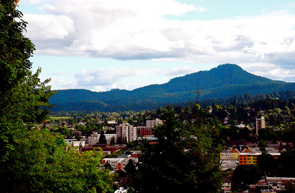 הנוף הנשקף מגבעת ספנסר – בתי העיר יוג'ין והגבעות שמסביבה