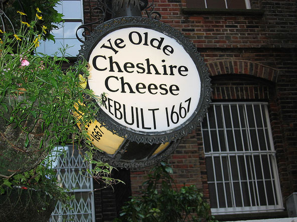 זהו פאב ספון עץ וחשוך, שנראה כמבוך של כוכים, חדרים, מסדרונות וגרמי מדרגות רעועים, עד שאפילו המבקרים הקבועים בו עשויים להיות מבולבלים וללכת לאיבוד, בעיקר אחרי מנה הגונה של אלכוהול. גם פה צ'רלס דיקנס היה אורח קבוע – הוא נהג לשתות פה ולאכול את הגרסה הבריטית המסורתית לטוסט גבינה, וולש ראביט, ואפילו הזכיר את המקום בספרו "בין שתי ערים". דיקנס לא היה המפורסם היחיד שפקד את הפאב הזה, גם המשורר אלפרד טניסון, הסופר ארתור קונן דויל ("שרלוק הולמס"), המשורר והמילונאי סמואל ג'ונסון ואפילו הפילוסוף הצרפתי וולטר נמנו על אורחיו הקבועים. כתובת: 145 Fleet Street  השלט של Ye Olde Cheshire Cheese מעיד כי הפאב נבנה מחדש ב-1667