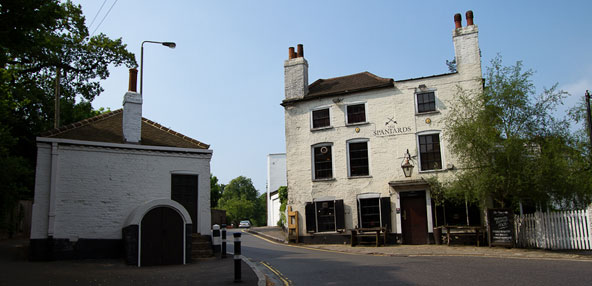 הפאב מלא אווירה ואופי, עם קירות עץ, ריהוט עתיק, אח וספרים עם כריכות עור, אבל בימים שטופי שמש אפשר גם לשבת בגן הירוק שבחוץ. המקום הזה הוכתר כמה פעמים כאחד הפאבים הטובים בלונדון, והאוכל שמוגש בו, שכולל קלאסיקות פאבים כמו נקניקיות ופירה, פאי כליות או פיש אנד צ'יפס, זכה לפני שנים אחדות בתואר "אוכל הפאבים הטוב ביותר בלונדון". כתובת: Spaniards Road, Hampstead  Spaniards Inn. שודדי דרכים נהגו לתצפת מכאן על הנוסעים העשירים שחלפו בדרך | צילום The Spaniards Inn ©