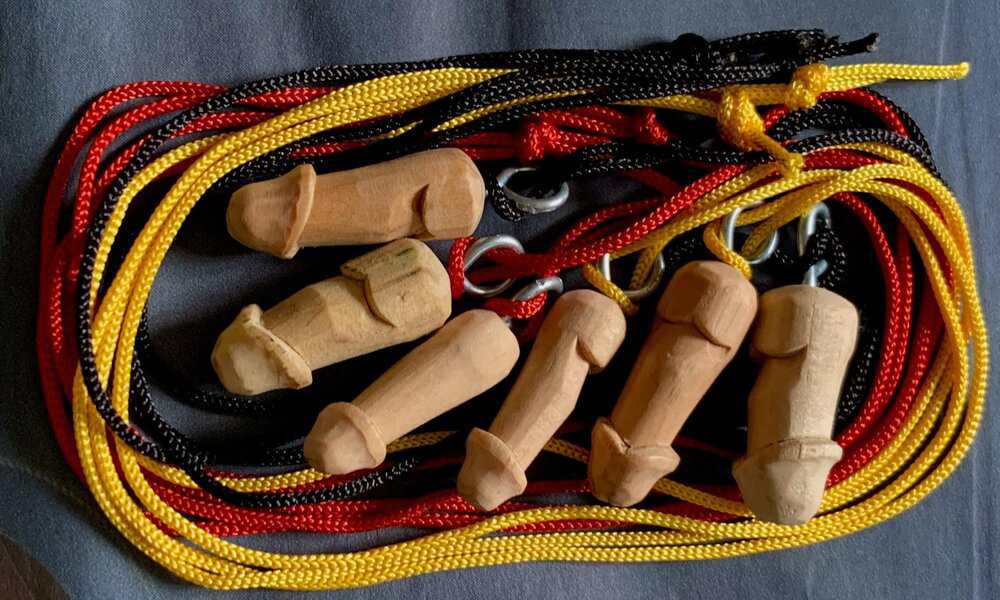 הטקס כולל גם היבט משעשע: הבנאים שעל הגג מושכים מעלה סלסילה מלאה בפאלוסים, בעוד נשות הכפר למטה מנסות לעכב את התרוממותה. הגברים "נכשלים" לרוב בכוונה, כדי לקבל מבעל הבית תוספת של יין אורז, שכיכול מחזק אותם ומאפשר להם להשלים את המשימה. כל המעמד מלווה בצעקות קולניות ובקריאות עידוד של הקהל.