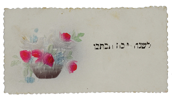 גלוית שנה טובה ששלחו אל רבקה שמעוני לבית פטרבורג בירושלים, אביה משה חיים ואחותה חנה בבלארוס בשנים 1941-1940