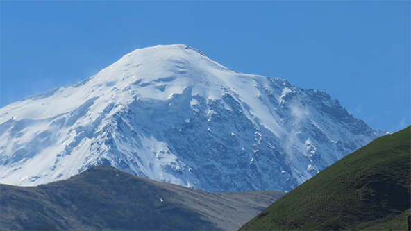 הפסגה הגבוהה של הר הקזבק המפורסם מוסיפה דרמה לנוף