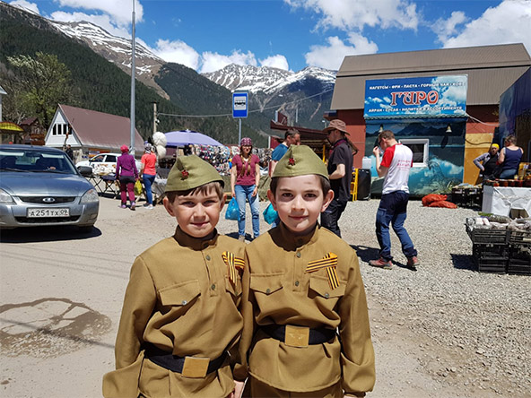 ילדים צ'רקסים בכפר ארחיז בלבוש מיוחד לכבוד 9 במאי, יום הניצחון על גרמניה הנאצית