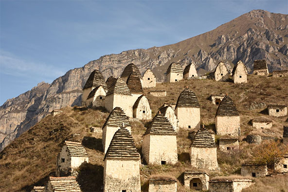 מזרחית מאזור האלברוס נמצאת הרפובליקה של צפון אוסטיה, המאוכלסת ברובה בנוצרים אורתודוקסיים. כאן נמצא אתר מיוחד במינו ומרתק מאוד. זהו מכלול של 99 קברים עתיקים בצורת פירמידות קטנות על צלע גבעה סמוך לכפר דרגאבס (Dargavs). המקור של עיר המתים (נקרופוליס) הזו הוא אלני, שבט ממוצא פרסי שהתיישב באזור. חלק מהקברים עתיקים מאוד, החל מהמאה 12.