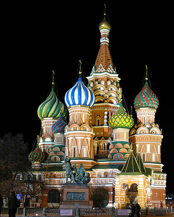 קתדרלת וסילי הקדוש, מוסקבה קתדרלת וסילי הקדוש, שנמצאת בכיכר האדומה, היא אחד הסמלים המוכרים ביותר של מוסקבה, ושל רוסיה. קשה להכין במבט אחד את כל הפרטים ואת כל הצבעים, הגוונים ובני הגוונים של המבנה המרהיב והמפתיע הזה, שבנוי בסגנון אדריכלי ייחודי, שאינו מאפיין את האדריכלות הרוסית של המאה ה-16, אז נבנתה הקתדרלה. הכיפות דמויות הבצל שונות זו בזו בגודל, בצורה ובצבעוניות, והן מקיפות מגדל מרכזי שאף הוא מצטיין בשלל פרטים ובצבעוניות רבה. גם אם ביקרתם פה ביום, אל תחמיצו סיור חוזר בשעות הלילה, אז אפשר להבחין טוב יותר בפרטי הכיפות המוארות. ביום או בלילה, אין ספק שזהו בניין עוצר נשימה גם בהשוואה לקתדרלות אחרות ברוסיה ובשאר העולם.  קתדרלת וסילי הקדוש בכיכר האדומה. אדריכלות ייחודית ומפתיעה