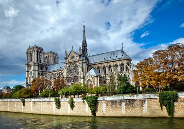 למרות שזהו מבנה מאסיבי ביותר, הוא נראה אוורירי וקליל, בזכותן של הקשתות הדואות, הנראות כאילו הן מרחפות באוויר, והצריחונים הרבים המזדקרים אל על. 332 מדרגות צרות מובילות לגג הקתדרלה, משם אפשר לצפות מקרוב ביער הצריחים ובפסלים שניצבים על ראשי עמודים, שאי אפשר לראותם מלמטה, וכמובן – בנוף עירוני מרהיב.  מגג הקתדרלה של מילאנו אפשר להבחין לא רק בנוף עירוני אלא גם בפסלים על ראש הצריחונים שמזדקרים אל על נוטרדם, פריז קתדרלת נוטרדם דה פארי (Notre Dame de Paris, פירוש השם הוא גבירתנו מפריז) היא ככל הנראה הקתדרלה המפורסמת ביותר בעולם, ואת פרסומה היא חבה במידה רבה לסופר ויקטור הוגו, שמיקם בה את עלילת סיפרו "הגיבן מנוטרדם". הוגו גם פעל רבות כדי לשמר את הקתדרלה, לצד קתדרלות גותיות נוספות, בתקופה שבה קתדרלות גותיות נתפסו באירופה כמבנים מפלצתיים מעידן חשוך. טוב עשה הוגו, שכן היום נוטרדם, ששוכנת בלב ההיסטורי של פריז, נחשבת לאחד מסמלי העיר. היא נבנתה במשך כמעט 200 שנה, החל ממחצית המאה ה-12, על אי קטן בלב נהר הסן, איל דה סיטה.