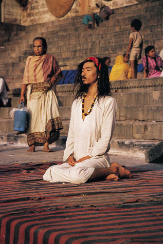 | סאדו שקוע במדיטציה על גדת הגנגס. התגלות הראגה, לאמן ולמאזין כאחד, נגזרת מיכולתו של המוסיקאי לשנות את מצב התודעה שלו למצב שבו הראגה מתגלה דרכו | צילום: יעל שורץ |