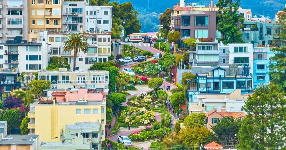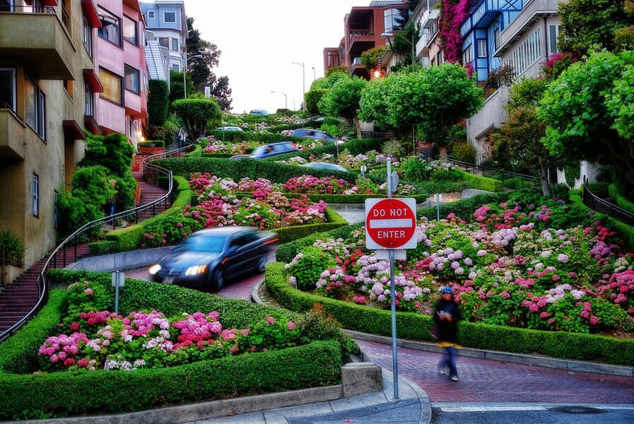רחוב לומברד (Lombard) שבשכונת הגבעה הרוסית (Russian Hill) בסן פרנסיסקו הוא כנראה המפורסם ביותר ברשימה הזו, והוא הופיע באינספור סרטים וסדרות טלוויזיה, מוורטיגו של אלפרד היצ'קוק ועד צער גידול בנות. האזור הפוטוגני ביותר של הרחוב הוא קטע תלול אורך 400 מ' בסך הכל, ובו שמונה פניות רצופות חדות במיוחד שהעניקו לו את תואר הרחוב המפותל בעולם. זהו רחוב חד סטרי בו מכוניות יכולות לנסוע רק מלמעלה למטה במהירות מקסימלית של 8 קמ"ש. עבור הולכי הרגל יש מדרגות בצד הכביש. הבתים הוויקטוריאניים, הגינות המטופחות השופעות צמחייה ופרחים וריצוף הלבנים האדומות תורמים לפוטוגניות של הרחוב, וכך גם יופיו של מפרץ סן פרנסיסקו הנשקף מחלקו העליון של הרחוב.