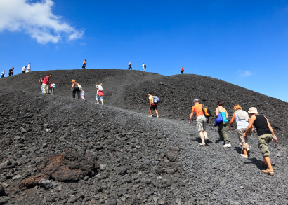 מטיילים מטפסים על הר אטנה. בחורף, שההר מתכסה בשלג, אפשר לגלוש מכאן כלפי מטה | צילום: אייסטוק