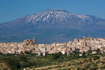העיירה רגלבוטו למרגלות הר אטנה. למרות שההר התפרץ פעמים רבות במהלך השנים, תושבי האזור מסרבים להתפנות | צילום: אייסטוק
