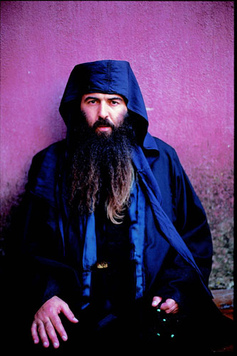 הנפלאה (דומה למה שיכול היה להיות בגליל, אילו לא היה מיושב כל כך); אין כאן עיזים וכבשים להשחית אותה כמו בחלקים אחרים של יוון. מקור הדבר באיסור הגמור (מאז המאה ה־11) להכניס לאתוס לא רק נשים ונערים שזקנם טרם צימח, אלא גם נקבות של בעלי חיים. הנוסע האנגלי הגדול רוברט ביירון, איש שידע להצביע על יופיה של האמנות הביזנטית בתקופה שזו היתה בזויה בעיני רבים, ושערך שני ביקורים ארוכים באתוס בשנות העשרים המאוחרות, מספר בספרו "התחנה" (ספר חובה למבקר במקום, למרות סגנונו המפותל) שלפני היות האיסור קיבלו רועים ולאכים רשות לספק לנזירים צמר וחלב, והרחיבו את עסקיהם וסיפקו להם גם את נשותיהם ובנותיהם. האיסור על חסרי הזקן עורר בעיות מלכתחילה, ואינו נשמר בקפדנות גם היום (לנערים שליוו כומר רוסי שבא לביקור איתנו במעבורת היו פנים חלקות למשעי), וביירון סיפר על שתי נשים נכבדות שביקרו באי במאות קודמות; אבל יושבי המנזרים שבהם ביקרתי בשתי הפעמים, וגם האנשים שפגשתי בדרכים, היו אכן כולם גברים מעל לגיל החלקות. האם כולם הומואים? מכר שלי סיפר לי ששני ידידים הומואים שלו חזרו מאתוס, אחד אחרי לילה מעייף מאוד ואחד אחרי ארבעה ימים משמחים; וכל המטיילים היוונים ששוחחתי איתם – אנשים משכילים שבאו לאתוס לסוף שבוע בטבע, והעניין שלהם בדת ובנזירים (או בהומואים) מצומצם למדי – הניחו כמובן מאליו שכך הוא; אבל ההיסטוריון הנודע של ביזנטיון, ג'ון ג'וליוס נוריץ', סבור כי אנשי אתוס אינם מצדיקים את המוניטין האלה. ניסיתי, בעדינות ובעקיפין, לברר את השאלה עם חאריטון – נזיר צעיר ונמרץ המדבר אנגלית שוטפת, שהסתובב במערב לפני שהגיע לכאן לפני שנים אחדות, דומה למדי במראהו, וגם בדבריו, לחוזר בתשובה מש"ס; אבל הוא רק חזר ואמר שלא חסר לו דבר. הוא היה בעולם, והוא לא מתגעגע. הסקיטי של אנה הקדושה, שם גר חאריטון – בדרום־מזרח חצי־האי, קרוב לסוף המדרון  | | הנזיר חאריטון, הדומה במראהו, וגם בדבריו, לחוזר בתשובה מש"ס. הוא הסתובב במערב לפני שהגיע לאתוס, ואומר שלא חסר לו דבר. הוא היה בעולם, והוא לא מתגעגע |