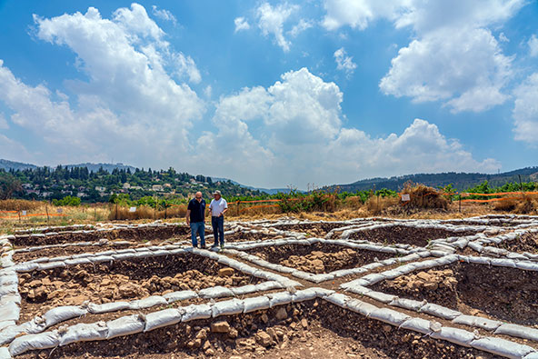 ד"ר חמודי חלאילה וד"ר יעקב ורדי, מנהלי החפירה במוצא מטעם רשות העתיקות, ביישוב שנחשף | צילום: יניב ברמן, רשות העתיקות