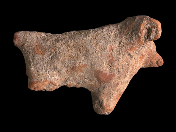 פסלון פרהיסטורי של שור | צילום: קלרה עמית, רשות העתיקות