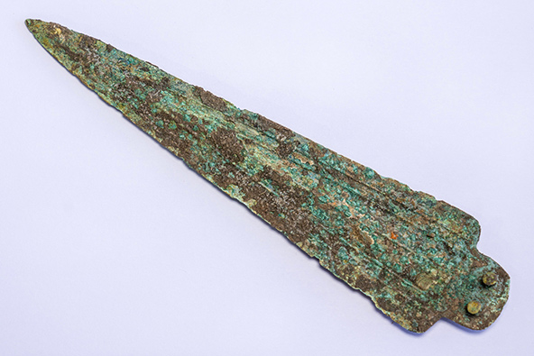 חנית מתקופת הברונזה התיכונה שנקברה כמנחת קבורה בקבר לוחם | צילום: יניב ברמן רשות העתיקות
