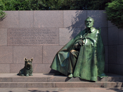 לתפקידיו העיקריים – מושל מדינת ניו יורק ונשיא ארצות הברית – נבחר רוזוולט לאחר שכבר היה משותק כתוצאה ממחלת פוליו. נחישותו להתמודד על תפקידים אלה מעידה על אישיותו לא פחות מהצלחותיו בעת משבר. הוא גם נהג להעביר את מסריו לציבור באמצעות הרדיו: סדרת נאומיו נקראה "שיחות ליד האח", ובהם נשא דבריו אל העם. האנדרטה לרוזוולט (Franklin Delano Roosevelt Memorial) היא ההפך הגמור ממה שביקש לעצמו. בעודו בחייו התבטא בנושא, וציין שאם תוקם אנדרטה לזכרו, הוא היה מעדיף גוש אבן שיונח במרחב הפתוח של העיר. במקום אבן זיכרון צנועה הוקם גן רחב ידיים, המחולק לארבע חצרות, כל אחת מוקדשת לתקופה בנשיאותו. בין החצרות מפרידים קירות של גרניט אדום, שעליהם חקוקים קטעים מנאומיו, המעוררים געגוע לסוג מנהיגות שכנראה עבר מעולמנו. הגן כולו הוא אנדרטה: יש בו שטחים מרוצפים וכרי דשא, עצי דובדבן, מפלים, בריכות ופסלים. נוסף על פסל רוזוולט היושב (ולידו פאלה, כלבתו האהובה), יש פסל של מובטלים בתור לחלוקת מזון ופסל של אזרח המאזין לרוזוולט ברדיו. קיר בחצר הרביעית מוקדש לאלינור רוזוולט, אישה רבת פעלים הראויה לאנדרטה בזכות עצמה, לאו דווקא בשל היותה אשת הנשיא. היא פעלה למען זכויות האדם וכיהנה כשגרירת ארצות הברית באו"ם. אף שלא לפאר כזה ייחל רוזוולט, ביקור באנדרטה לזכרו הוא מהמרגשים ביותר בוושינגטון, ובעיני הינו בחזקת חובה. היא תוכננה על ידי האדריכל לורנס הלפרין, ואמנים רבים השתתפו בהקמתה. מיקומה מעיד על חשיבותה – באזור פארק פוטומק המערבי, בין "אגן הגאות" והנהר ובין אנדרטאות ג'פרסון ולינקולן. אפשר וכדאי לשלב את הביקור בשלוש האנדרטאות. נקודת ביקורת נגד המתכננים היתה על הימנעות מאזכור הנאצים כצד הרע במלחמת העולם, והתעלמות מאחד הנאומים המפורסמים של רוזוולט אחרי ההתקפה היפנית בפרל הרבור ("יום שייזכר לדיראון עולם"). המבקרים ראו בהימנעות מאזכור יפן וגרמניה ניסיון להיות "פוליטיקלי קורקט" – על חשבון האמת ההיסטורית.