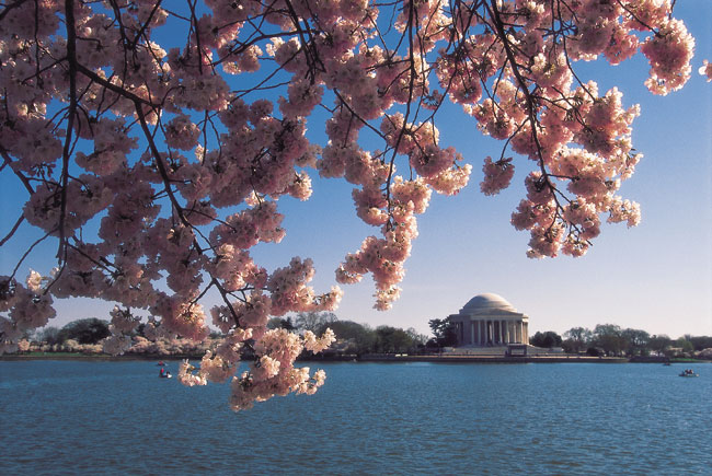 אנדרטת ג'פרסון: מנסח הצהרת העצמאות כנשיא, טיפל ברכישת לואיזיאנה מהצרפתים, מדינה שהכפילה את שטח ארצות הברית. בחסותו נשלחה משלחת בראשותם של קפטן לואיס ולוטננט קלארק להגיע למערב היבשת. פטירתו בגיל 83, כמה סמלי, היתה ביום העצמאות החמישים של ארצות הברית, שעות מספר לפני מות עמיתו, הנשיא השני, ג'ון אדמס. אחת הדוגמאות למעמדו הרם של ג'פרסון בזיכרון הקולקטיבי האמריקאי היא אמירתו הידועה של הנשיא קנדי, בפני כנס של מקבלי פרס נובל שהתארח בבית הלבן: "זה הריכוז הגדול ביותר של כשרונות שהתכנס בבית הלבן מאז שתומס ג'פרסון סעד כאן לבדו". כהוקרה לתרומתו לארצות הברית נבחר מקום מיוחד לאתר שינציח את שמו – בגדה הדרומית של "אגן הגאות", בקו ישר מדרום לבית הלבן ולאנדרטת וושינגטון. את אבן הפינה לאתר יצק הנשיא רוזוולט בשנת 1939, והאתר נחנך ביום הולדתו ה־200 של ג'פרסון, בשנת 1943. האדריכל ג'ון ראסל פופ התחשב בטעמו האישי של ג'פרסון, כפי שבא לידי ביטוי בכתביו, ותכנן את האנדרטה כמעגל של עמודים שכותרותיהם יוֹניות, בסגנון ניאו־קלאסי. במרכז, מתחת לכיפה, ניצב פסל ברונזה של ג'פרסון בגובה שישה מטרים, יצירתו של רודולף אוונס, ועל הקירות חקוקים דבריו, הלקוחים ממגילת העצמאות. מספרים שבוני האתר שיבשו בכוונה את ציטוטיו של ג'פרסון החקוקים על הקירות, כאות מחאה על כך שלא הוקצה להם מרחב הולם לכתיבתם.