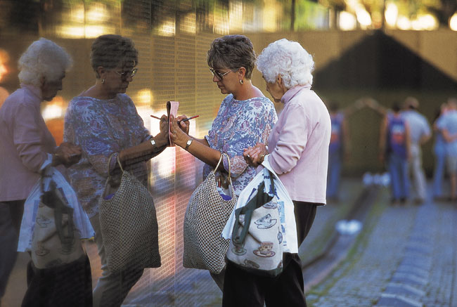 אנדרטה לחללי מלחמת וייטנאם: לכל איש יש שם מזמיני האנדרטה ביקשו לבטא כמה רעיונות: ראשית, הם לא הסתפקו בהנצחה תחת כותרת כללית, סתמית, אלא ביקשו ששמותיהם של כל חייל וחיילת שנפלו, שנעדרו או שלא חזרו מהשבי יונצחו באופן אישי ויהיו חקוקים על האנדרטה. הם ביקשו אנדרטה לבני האדם, שלא תהיה בה שום אמירה פוליטית, ושתביא את המסתכל בה להתבוננות פנימית ולמחשבה. בהיבט האסתטי והתכנוני, האנדרטה היתה אמורה להתמזג בסביבתה, הן מבחינה ויזואלית והן מבחינת התוכן. הצעתה של סטודנטית בת 21 בשם מאיה יינג לין נבחרה לאנדרטה. היא בנויה משני קירות משולשים, עשויים גרניט שחור מלוטש, המחוברים ביניהם בזווית של 125 מעלות. יש המפרשים את צורתה כאוהל, יש הרואים בה צלקת על פני האדמה. חודו של קיר אחד פונה לכיוון אנדרטת וושינגטון וחודו של הקיר השני פונה לאנדרטת לינקולן. על הקירות חקוקים שמותיהם של 58,191 חללים ונעדרים, לפי תאריך מותם, נפילתם בשבי, או היעלמם בשדה הקרב. השמות מסודרים כך שהם יוצרים מעגל: שם החלל האחרון כתוב ליד ראשוני הנופלים. כל השמות חקוקים באותן אותיות, ללא קשר לדרגה. כולם שווים בעת מותם. סימון מיוחד מציין אם מדובר בחלל (מעוין), נעדר או שבוי שלא חזר (צלב). אם נעדר או שבוי חזר חי – מקיפים את שמו בעיגול, כסמל לחיים. אם נודע שנעדר או שבוי נפל חלל – משנים את הצלב למעוין. גאוניותה של האנדרטה בפשטותה. היא אינה מפוארת, אבל לנוכח השמות הרבים, היא מרגשת כל אדם המתבונן בה. לזה בדיוק התכוונה המתכננת, באומרה: "השמות יהיו האנדרטה". אבל יש בה משהו נוסף – עם המתים והנעדרים משולבים בה החיים: בקירותיה החלקים כזכוכית משתקפים – על רקע השמות – המבקרים באתר, העצים והמדשאות שמסביב. נוגע ללב לראות את בני משפחות החיילים מניחים פרחים או שי צנוע כלשהו ליד המקום שבו חקוק השם של יקירם, או מעתיקים את שמו על נייר. כאן, בניגוד לאנדרטאות של ראשוני האומה, הכאב עדיין חד, טרי, אישי מאוד. רבים התקשו לקבל אנדרטה אבסטרקטית, וביקשו משהו מוחשי יותר. כדי לכבד את רצונם הוצב באתר פסל המתאר שלושה חיילים המייצגים את הקבוצות האתניות העיקריות בחברה האמריקאית – לבן, אפרו־אמריקאי והיספני. במרחק מאה מטר משם הוצב פסל נוסף לכבוד כ־11 אלף הנשים ששירתו בווייטנאם. מתוארת בו אחות המטפלת בחייל פצוע (תשעים אחוז מהחיילות היו בכוחות הרפואיים). שני הפסלים הם חלק מהמכלול של אנדרטת חיילי וייטנאם.