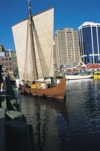 | ה"אייסלנדר", העתק מדויק של הספינות שבהן חצו הספנים הנורדים של ימי הביינים את האוקיינוס, מגיעה לנמל הליפקס, קנדה. ספינות אלה נבנו במיוחד להפלגות ארוכות בים הפתוח. הן יציבות ומהירות מאוד – שבעה מילין ימיים בשעה בממוצע (12 קילומטר בשעה) – ובשילוב של רוח טובה ומשוטים הצליחו לגמא מרחקים גדולים בימים ספורים. בעבר היו נדחפים 70 אנשים לספינה כזו, ומתחלפים במשמרות חתירה ב-32 משוטים. במרכז הספינה שמרו על אש דולקת, ולמסעות ארוכים היו לוקחים כבשים שישמשו מזון לדרך |