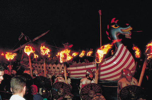 | הווקינגים השתלטו של חלקים גדולים של צרפת, גרמניה והאיים הבריטיים. באיי שטלנד, שהיו מאחז נורווגי במשך מאות שנים, חוגגים מדי שנה פסטיבל ויקינגי גדול – אטרקציה תיירותית, שמבטאת אולי גם את רצונם של בני שטלנד לזכור שהם אינם אנגלים ולא סקוטים (שטלנד ניתנה כנדוניה לכתר האנגלי רק במאה ה-18). במשך חודשים בונה קבוצה של 20 איש ספינה ויקינגית, וביום הפסטיבל לובשים כולם בגדים ויקינגיים, נושאים את הספינה אל הנמל ומעלים אותה באש |