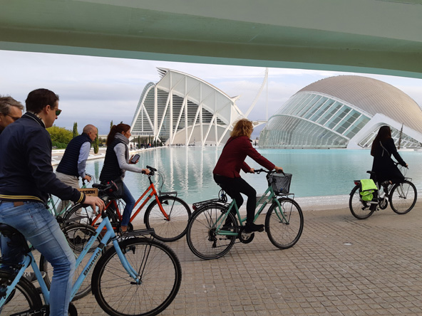 אנחנו חולפים על פני בית האופרה וארמון האמנויות, מבני הקומפלקס העתידני המטורף של "עיר האמנויות והמדעים", שתכנן סנטיאגו קלטראווה והוא כיום האטרקציה המובילה של ולנסיה. הגג של מבנה הכנסים עדיין בבנייה לאחר דיון סוער בחריגות התקציב המונומנטליות של קלאטרווה. בקצה "עיר האמנויות והמדעים" אנחנו נכנסים לביקור ב"אוקיאנוגרפיק" – האקווריום הענק של ולנסיה. הוא מפגיש ילדים ומבוגרים עם כרישים, ניבתנים ענקיים ומדוזות עדינות שהתנועה שלהן במים היא אחד הדברים היותר יפים שיש, וכמובן עם הכוכב של האוקיאנוגרפיק – לוויתן בלוגה, שאי אפשר להביט בו בלי להרהר במקומו הטבעי של היצור הנהדר הזה, האוקיאנוס. סיור אופניים עם do you bike עולה 25 אירו. אתר אינטרנט