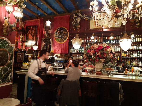 קפה דה לאס הוראס. מומלץ להיכנס ולו רק בשל התפאורה הבארוקית האקסטרווגנטית